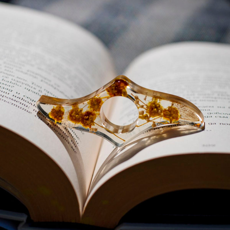 Нашите ръчно изработени държачи от епоксидна смола и растения са едновременно красиви и практични. 🌿 Те ти осигуряват комфорт, за да се насладиш пълноценно на всяка страница от твоето приключение. 📖✨